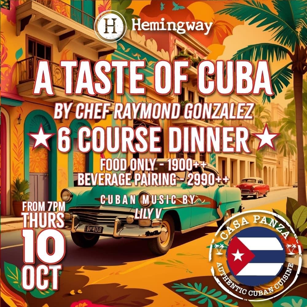 Come and join us at Hemingway as we host Chef Raymond Gonzalez. Chef Raymond will take us on an interactive dining experience, presenting the flavors' of Cuba through his 6 course